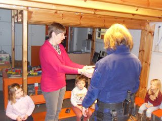 Eerst werd alles uitvoerig waargenomen in de klas en volgde een leerrijk gesprek over de taken van de politie. De juf kreeg zelf even de handboeien om ...
