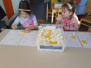 De kleuters deden deze week vooral op een speelse manier ervaringen op met cijfers en letters . Enkele sfeerbeelden..